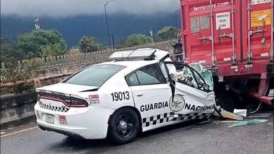Patrulla de la Guardia Nacional se impacta contra un tráiler en Veracruz