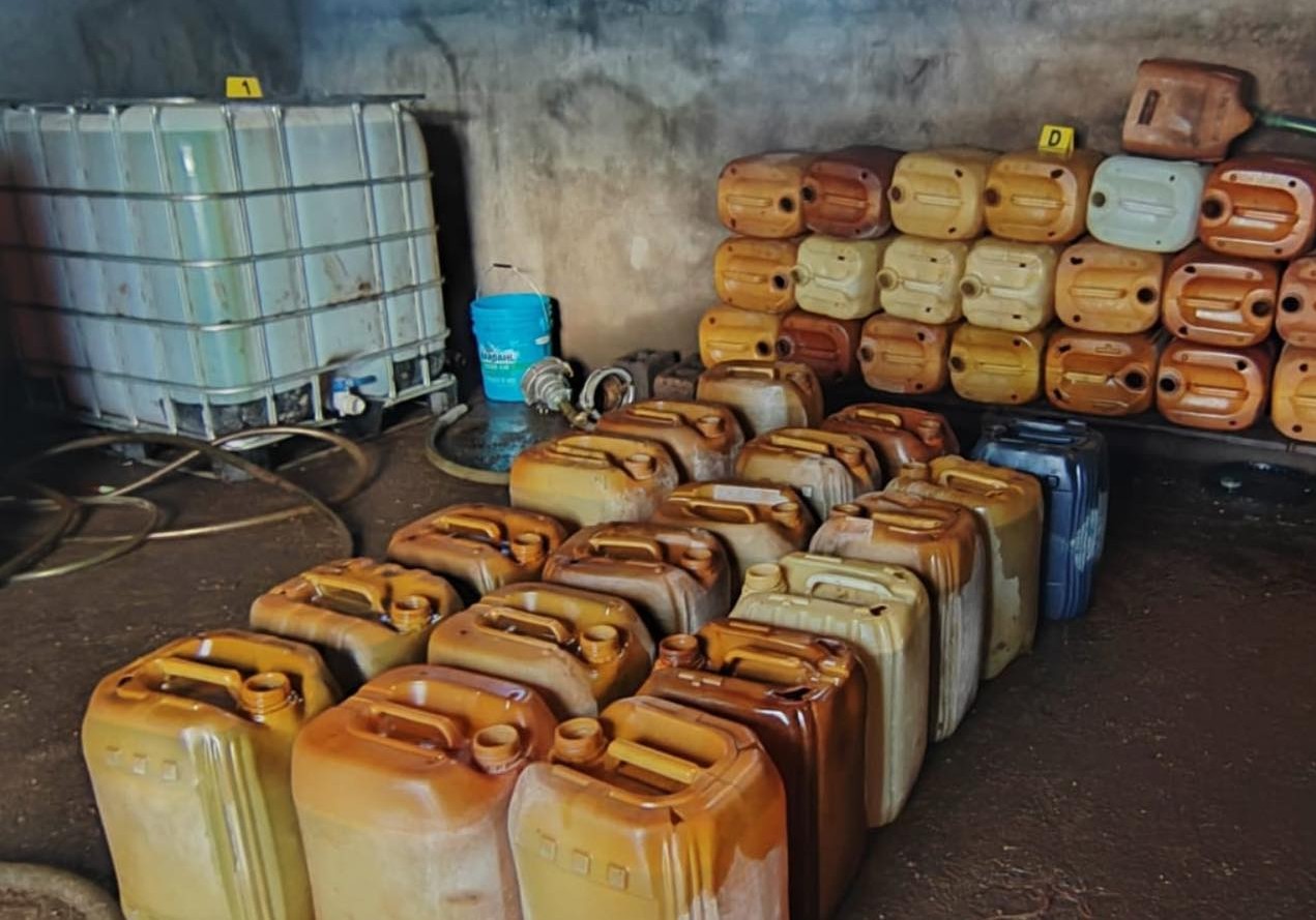 Finalmente, en un cuarto punto del libramiento Estación Manuel-González se aseguraron 700 litros adicionales, así como bidones, tambos y cubitanques, quedando también bajo resguardo el predio inspeccionado.