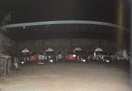 Durante el operativo, las autoridades aseguraron cinco pipas con capacidad de cuatro mil litros cada una, cinco impresoras, documentación diversa, teléfonos celulares, equipo de videograbación, terminal de tarjetas y el predio.
