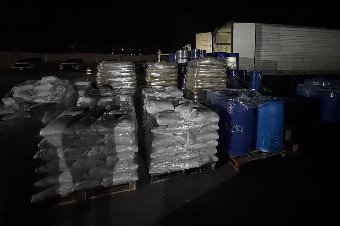 Omar García Harfuch, secretario de Seguridad y Protección Ciudadana (SSPC), informó del aseguramiento de un tractocamión que transportaba más de 13 toneladas y 13,400 litros de sustancias químicas y precursores químicos utilizados para la elaboración de drogas sintéticas.