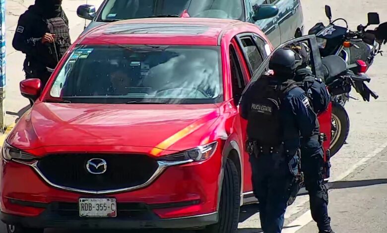 Personal de la Unidad Motorizada “Dragones” se movilizó de inmediato a la zona y logró detener la camioneta Mazda CX-5, color rojo, con número de serie JM3KFAEY8M0118726 y placas RDB355C; sobre la Carretera Federal 190, a la altura del restaurante “Titos” ubicado en Santa Rosa Panzacola.