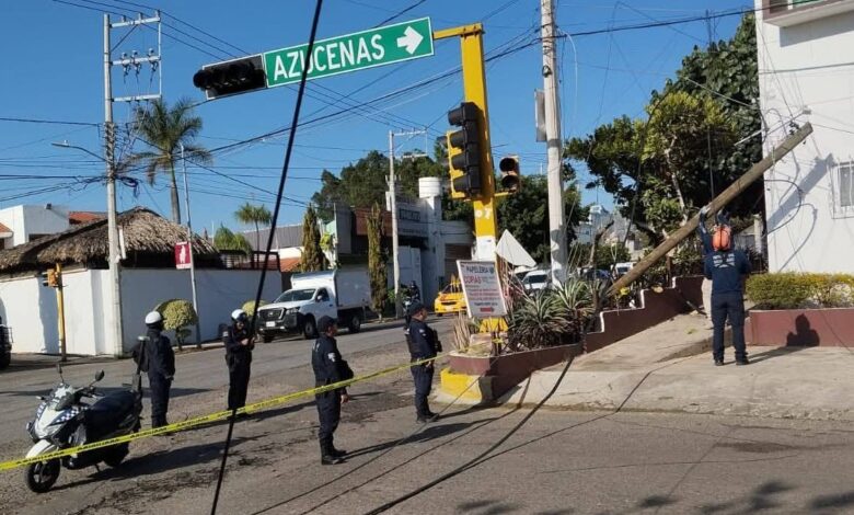 La Dirección de Protección Civil Municipal de Oaxaca de Juárez acudió al reporte en la calle Belisario Domínguez esquina Azucenas, en la colonia Reforma, donde se detectó un poste fracturado y cables colgando sobre la cinta asfáltica.