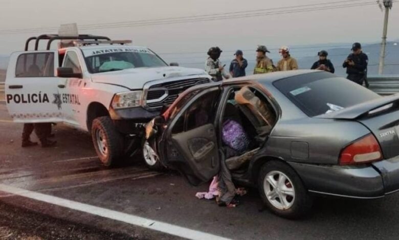 Un hombre y una mujer que viajaban a bordo de un automóvil compacto, perdieron la vida esta mañana, tras un choque frontal contra una patrulla de la Policía Estatal, en la carretera federal Iguala-Altamirano, a la altura del crucero de Cocula, Guerrero.