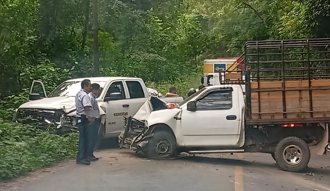 Un fuete accidente se registró esta mañana en la carretera federal 182 Tuxtepec-Ojitlán, a la altura del Paraje de la Virgen en el Cerro Tepezcuintle, donde una camioneta de la Secretaría de Bienestar del Gobierno federal y una camioneta de redilas chocaron de frente.