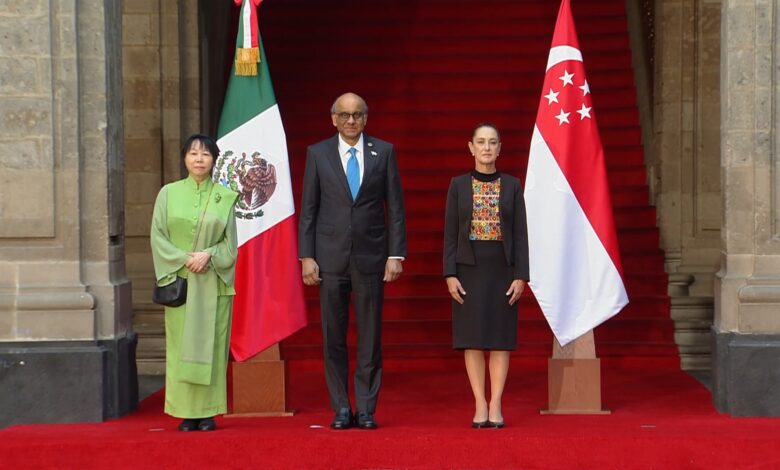 El presidente de Singapur, Tharman Shanmugaratnam, llegó a Palacio Nacional minutos antes de las 10 de la mañana, quien fue recibido en la Puerta de Honor, de la Sede del Ejecutivo federal, por la presidenta de México, Claudia Sheinbaum Pardo.