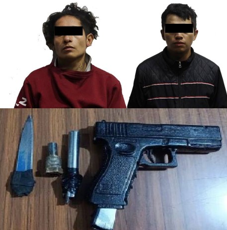 Detienen a dos sujetos en posesión de un arma de fuego de utilería en San Martín Mexicápan
