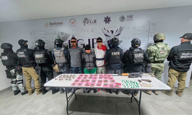 Los detenidos fueron identificados como Christian ‘N’, Marisela ‘N’ e Isaac ‘N’, además de tres menores de edad, todos pertenecientes a la Fuerza Zacatecas, célula del CJNG.