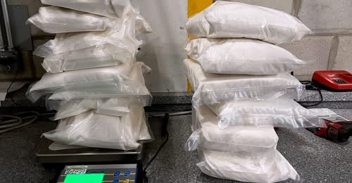 Tras desmantelar diversas secciones del automóvil, los oficiales localizaron 149 paquetes que contenían una sustancia cristalina. Las pruebas de laboratorio confirmaron que se trataba de clorhidrato de metanfetamina, con un peso total de 69.86 kilogramos.