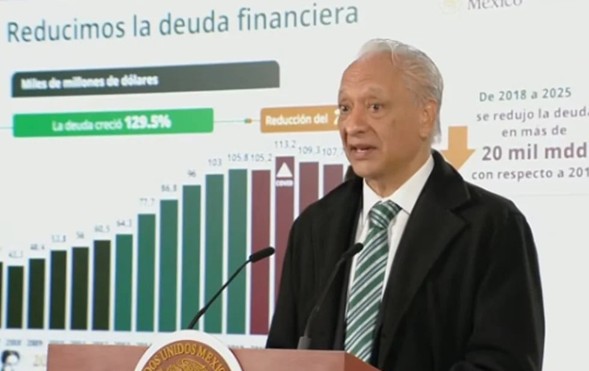 Al participar en la conferencia de la presidenta Claudia Sheinbaum Pardo, el funcionario apuntó que el monto de la deuda financiera es el más bajo en 11 años, lo cual se debe al Plan Estratégico de Pemex 2025-2030, el cual busca fortalecer a la empresa.