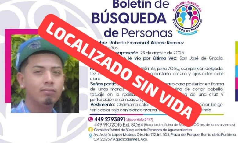 Posteriormente la mañana de éste sábado se identificó a Roberto Adame Ramírez de 19 años de edad que había sido reportado cómo desaparecido de parte de sus familiares el pasado 29 de agosto luego de que ya no regresó a su vivienda luego de haber acudido a un baile.