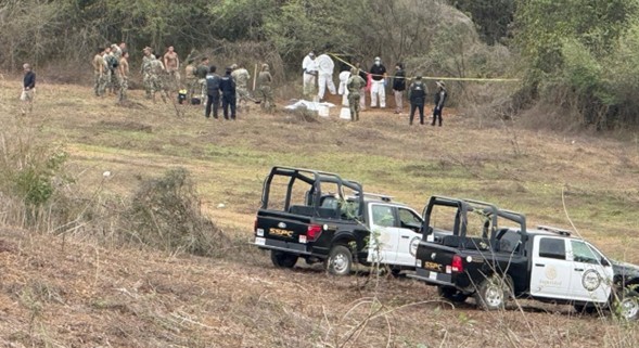 Elementos de la Fiscalía General de la República, de la Comisión Nacional de Búsqueda de Personas y del Servicio Médico Forense acudieron al predio ubicado a unos 4 kilómetros donde se realizaron trabajos de rescate y a su vez, se identificaron los restos de cinco mineros de 10 que fueron privados de la libertad el 23 de enero, cuando se dirigían del campamento donde vivían en Concordia, a su trabajo en la mina Vizsla Silver Corp.