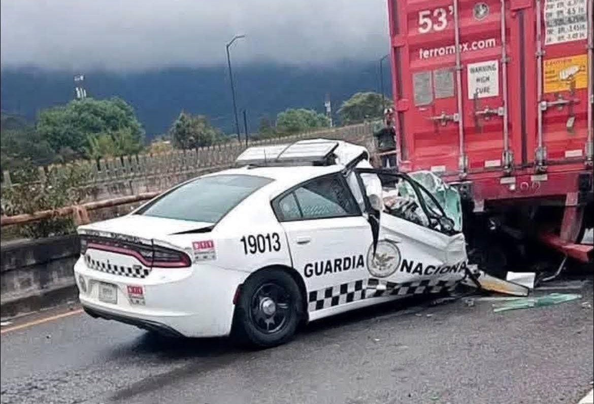 Un aparatoso accidente se registró la mañana de este lunes frente al Hospital Regional de Río Blanco, Veracruz, donde una patrulla de la Guardia Nacional con número económico 19013, se impactó contra la parte trasera de un tráiler en el entronque de la autopista Vicente Guerrero.