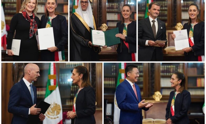 Recibe Sheinbaum cartas credenciales de cinco embajadores en México