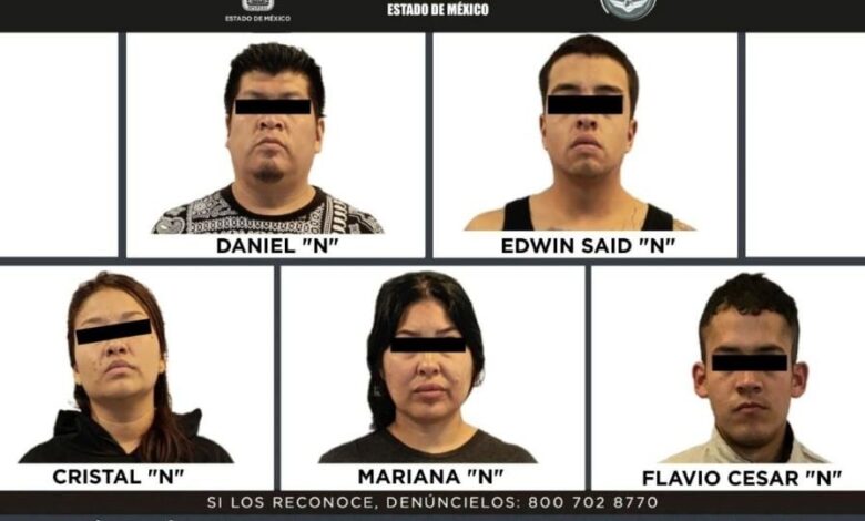 El operativo se llevó a cabo en la colonia Ojo de Agua, en el municipio de Tecámac, donde fueron detenidas cinco personas identificadas como Flavio César “N”, Edwin Said “N”, Daniel “N”, Mariana “N” y Kristal “N”, quienes fueron trasladados a un penal regional y puestos a disposición de la autoridad judicial.