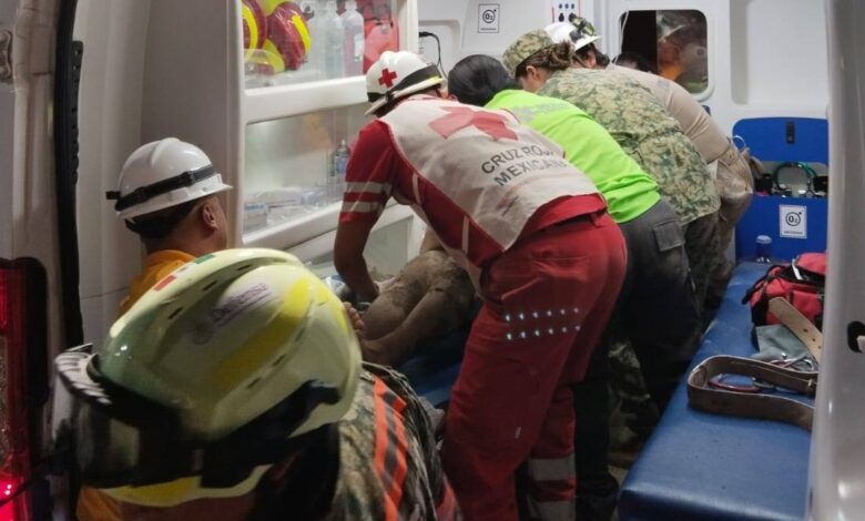 Rescatan con vida al primer minero sepultado en la mina Santa Fe, en Rosario, Sinaloa