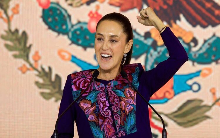 “Sheinbaum hizo historia al ser elegida la primera presidenta de México en una victoria aplastante en junio de 2024”, indicó la publicación.
