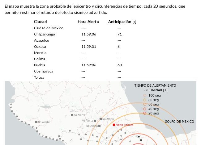 Información preliminar de la Alerta Sísmica del 02 de agosto a las 11:59:00 hrs., activándose los sensores cercanos en 30 km al noreste de la ciudad de Oaxaca con Magnitud: 5.6 grados, con epicentro a 13 km al Noreste de Tlacolula de Matamoros.
