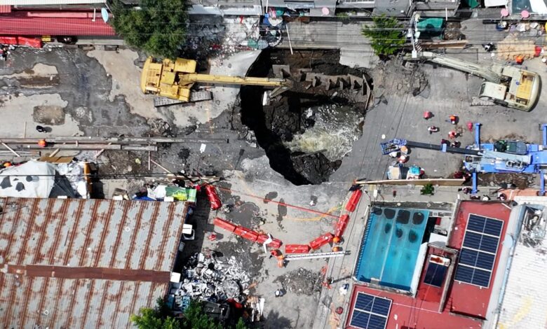 Hoy, la Secretaría de Gestión Integral del Agua (SEGIAGUA) informó en un comunicado, que las causas por las que se abrió el enorme socavón de más de 8 metros de profundidad el cual no deja de crecer, se formó por una ruptura en un tramo aproximadamente de 10 metros, en el colector de 2.44 metros de diámetro, de concreto reforzado, ocasionada por los asentamientos del terreno.