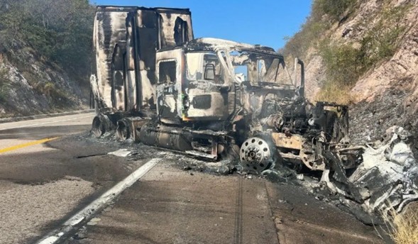 Casi de manera simultánea, la circulación en la autopista Mazatlán-Tepic fue interrumpida durante varias horas debido a bloqueos con vehículos incendiados. A la altura del kilómetro 182 fueron se localizaron dos tractocamiones con caja en llamas, mientras que una tercera unidad de carga fue siniestrada en el kilómetro 183.