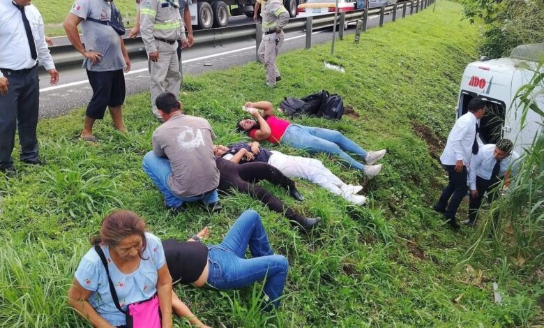 Mas de 10 personas que viajaban en la unidad con destino a la ciudad de Villahermosa, Tabasco, resultaron lesionadas.