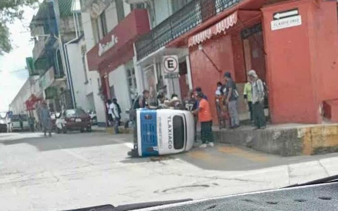 La mañana de este miércoles se registró la volcadura de un mototaxi en la calle Allende, casi esquina con Claudio Cruz, en el municipio de Tlaxiaco, dejando dos personas lesionadas.